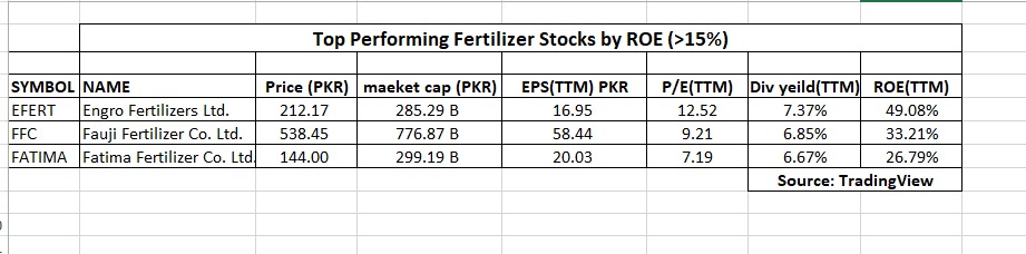 However, Pakistan’s fertilizer sector presents a unique opportunity a rare combination of high Return on Equity (ROE), strong dividend yields, and reasonable valuations.